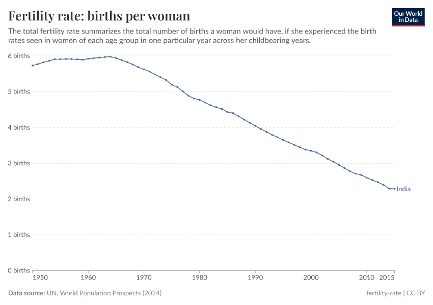 “Data Page: Fertility rate, total”. Our World in Data (2025). Data adapted from United Nations. Retrieved from https://fix-button-icon-margin.owid.pages.dev/grapher/children-per-woman-un [online resource]