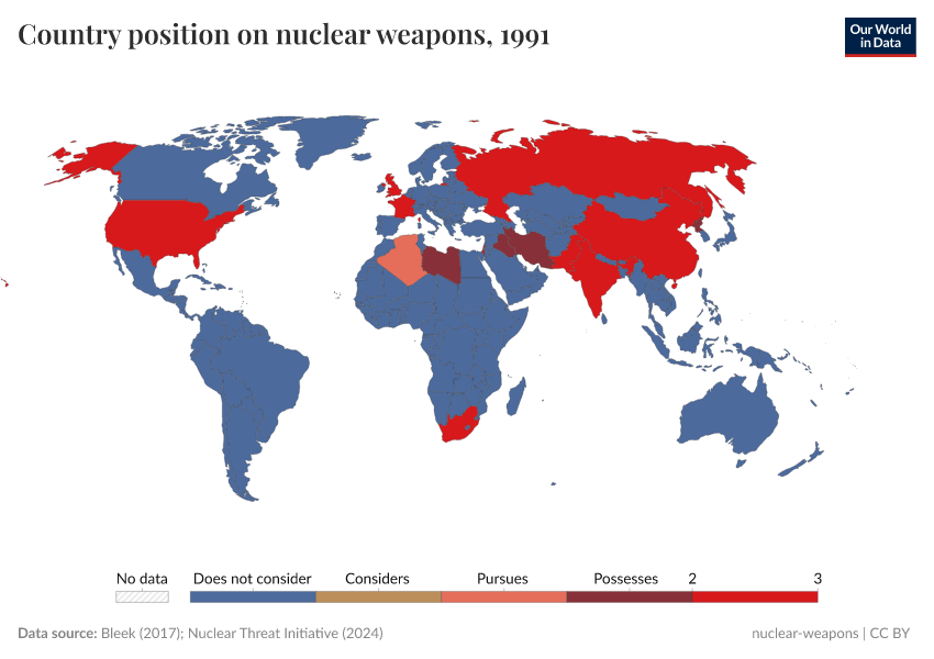 “Data Page: Country position on nuclear weapons”, part of the following publication: Bastian Herre, Pablo Rosado and Max Roser (2024) - “Nuclear Weapons”. Data adapted from Bleek, Nuclear Threat Initiative. Retrieved from https://fix-button-icon-margin.owid.pages.dev/grapher/country-position-nuclear-weapons [online resource]How to cite this data
