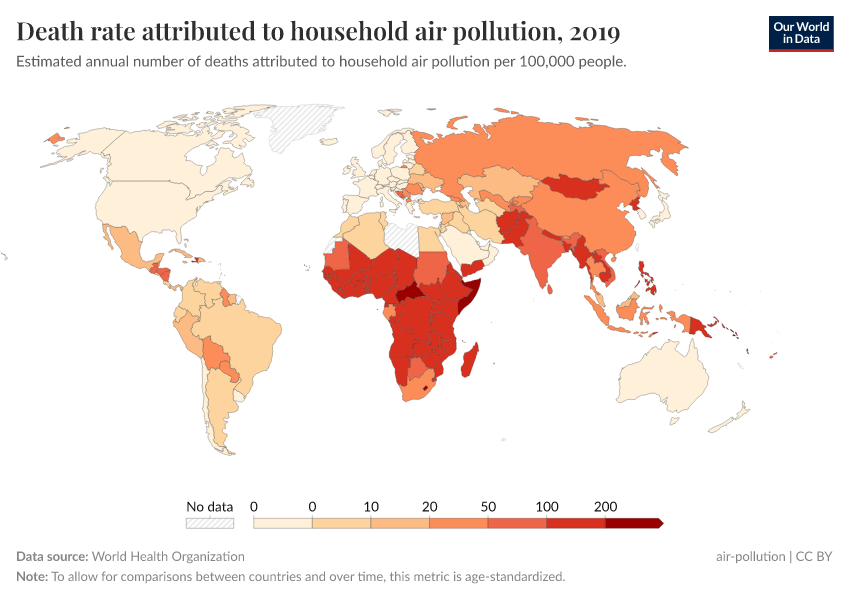 World Health Organization – processed by Our World in Data. “Death rate attributed to household air pollution” [dataset]. World Health Organization, “Global Health Observatory (GHO), World Health Organisation (WHO)” [original data]. Retrieved March 28, 2025 from https://fix-button-icon-margin.owid.pages.dev/grapher/death-rate-household-air-pollution